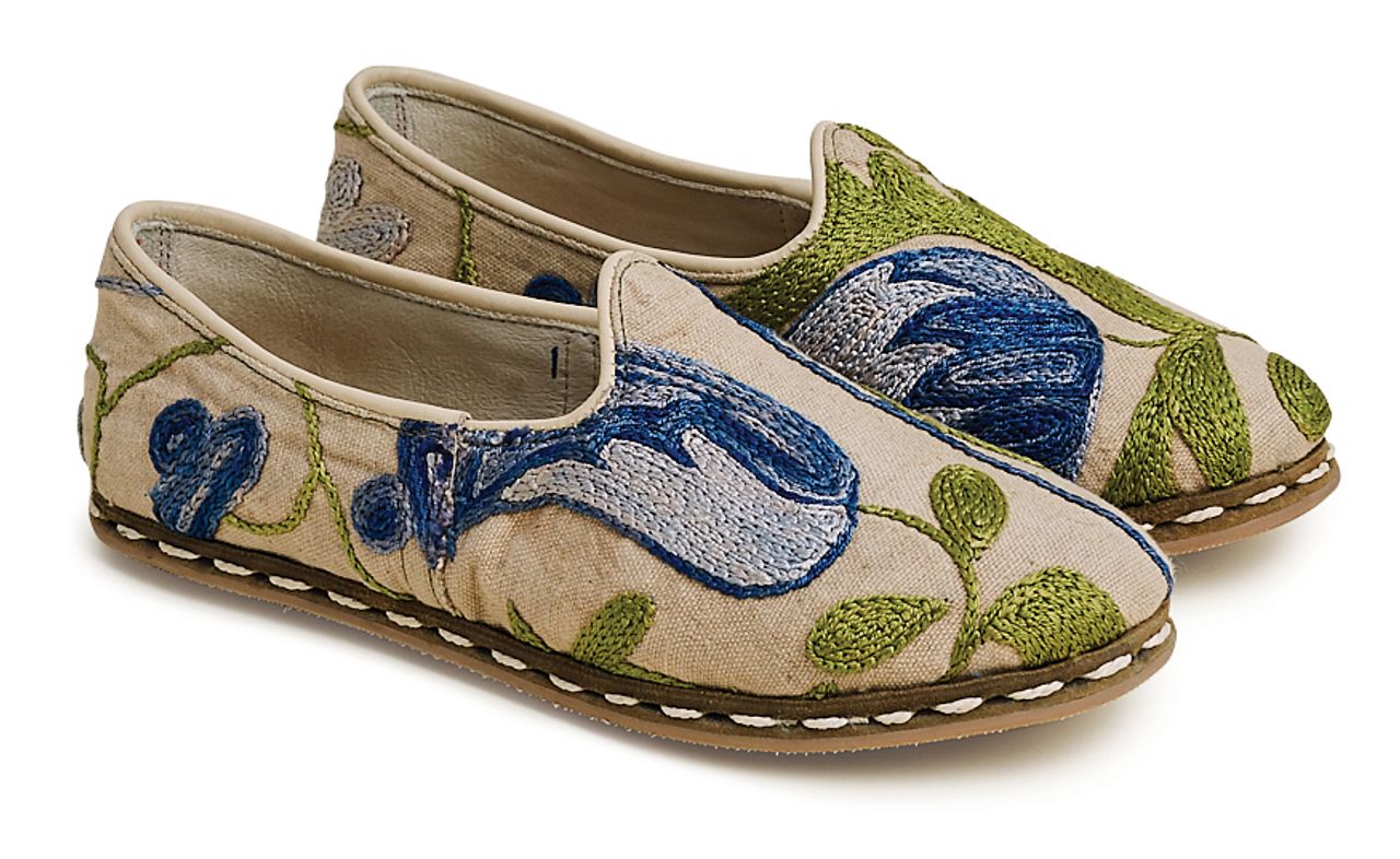 薩巴赫正在推出其標誌性拖鞋鞋款的限量版,每一雙都由品牌創始人米基·阿什莫爾和他的同事從伊斯坦布爾的大巴扎精選的古董蘇扎尼布料製成。415美元。