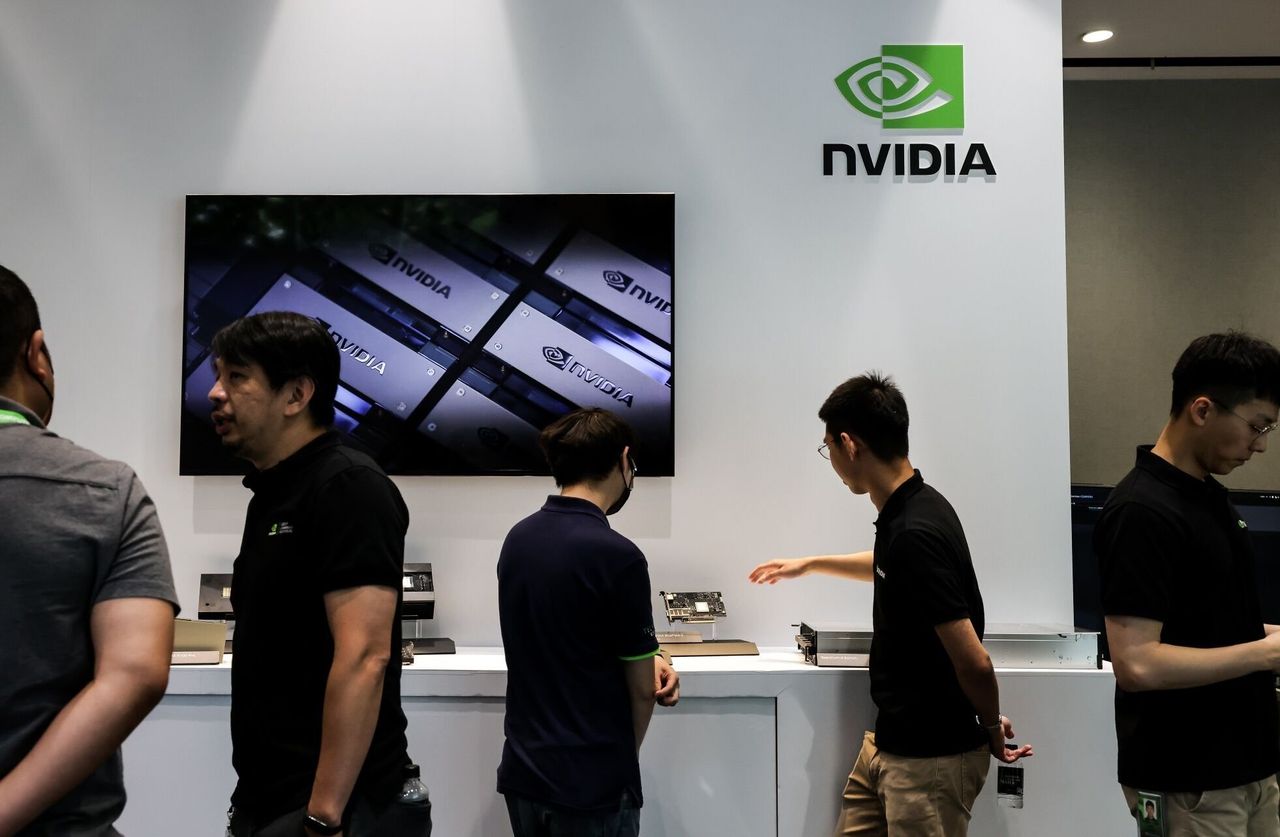 包括芯片製造商英偉達在內的公司高管和資深研究員在北京的會議上發表了講話。照片:I-Hwa Cheng/彭博新聞會議上的中國演講者來自頂尖大學和公司,包括被美國列入黑名單的電信公司華為技術、搜索巨頭百度和語音識別公司科大訊飛。美國在2019年對科大訊飛實施制裁,稱其協助中國政府監視新疆的維吾爾族和其他穆斯林少數民族。