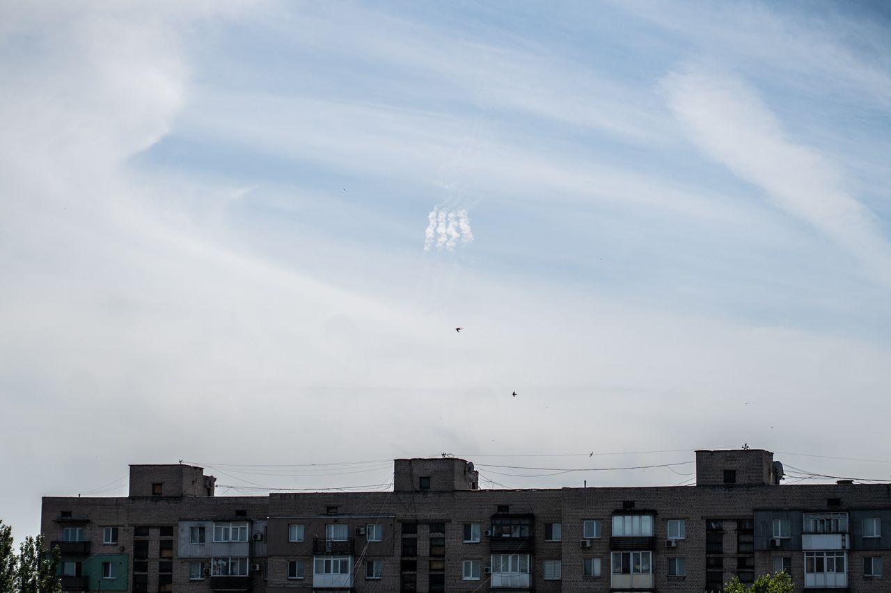烏克蘭頓涅茨克地區波克羅夫斯克上空建築物上看到的飛機尾跡。照片:《華爾街日報》Serhii Korovayny攝與此同時,克里維裏赫市議會負責人表示,週二俄羅斯對澤連斯基家鄉克里維裏赫一棟公寓樓的導彈襲擊造成的死亡人數已上升至12人。