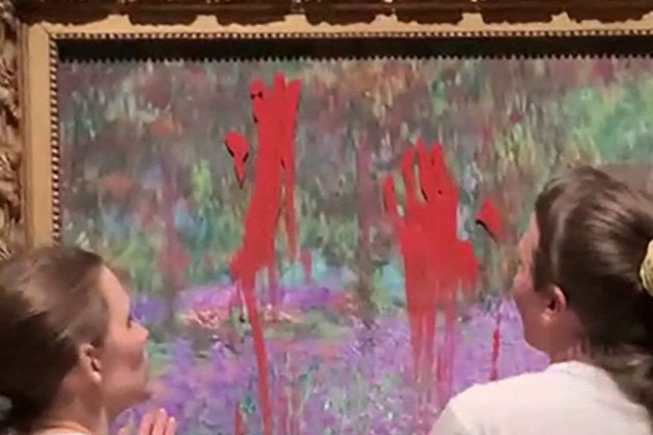 瑞典國家博物館週三表示,兩名女性向法國藝術家克勞德·莫奈的畫作潑灑"某種顏料"後將自己粘在畫框上,目前已被拘留。