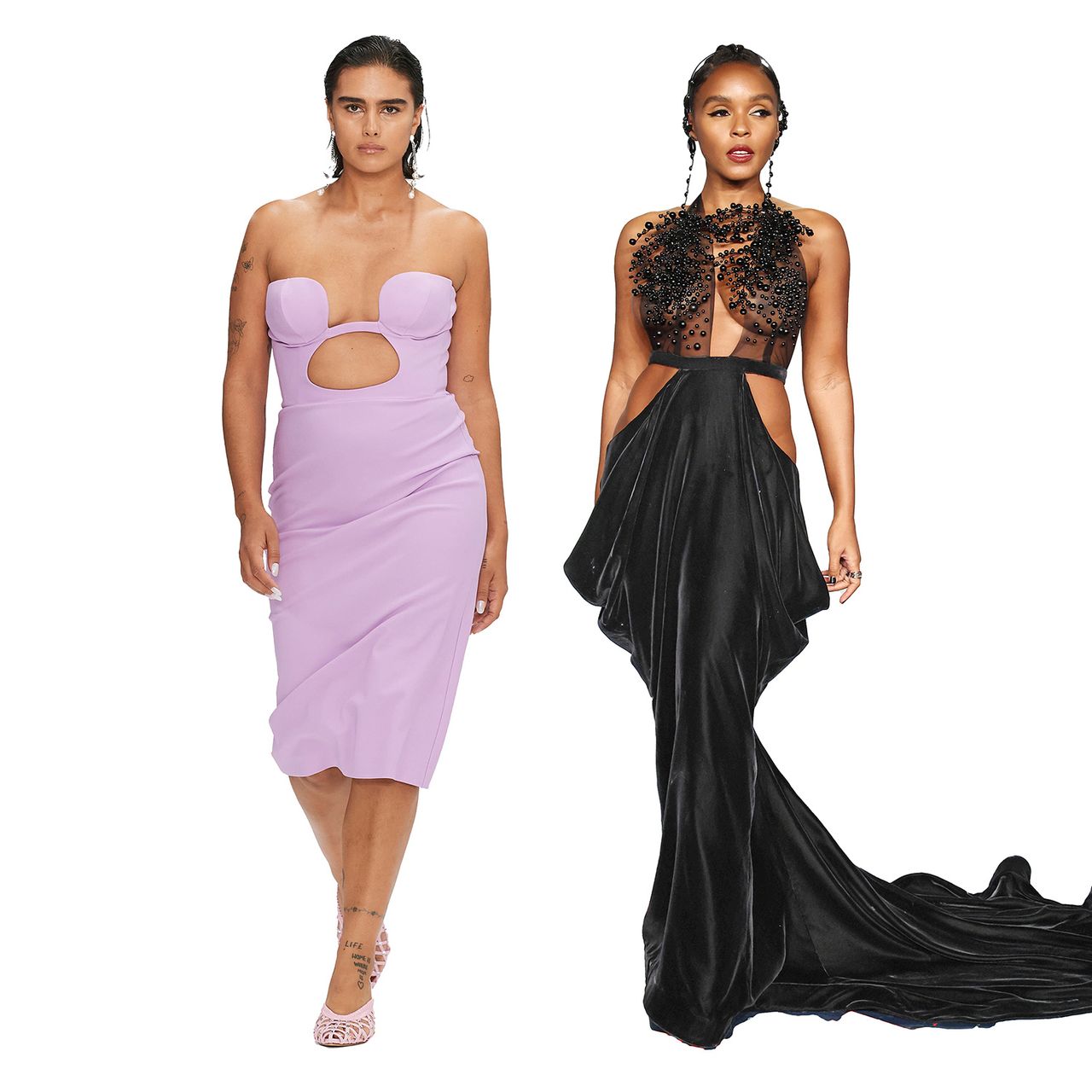 左起:Nensi Dojaka春季秀場鏤空裙;三月詹妮爾·莫娜伊的露胯禮服。圖片來源:Nensi Dojaka;丹尼爾·文圖雷利/蓋蒂圖片社(莫娜伊)“接下來我們還要挖空哪裏?“莎拉·胡佛打趣道,暗指時尚界對鏤空設計的地鼠式痴迷。這位現年38歲的紐約作家在印第安納州長大時,曾試圖模仿朱莉婭·羅伯茨在1990年《風月俏佳人》中那件"相當前衞"的Hunza G鏤空迷你裙(趣聞:該品牌已復刻多色版本)。胡佛近來鍾愛她少女時期嚮往的露膚設計的高階演繹:“試探穿着界限的過程充滿趣味。“辛格拉發現側腰鏤空最受客户青睞,而拉富恩特建議從露肩款入手。擔心過度暴露?拉富恩特推薦用透視 bodysuit(或襯裙)與鏤空單品"科學怪人式"混搭,電商Matches女裝總監莉安·威金斯表示這種穿法正風靡客户羣。