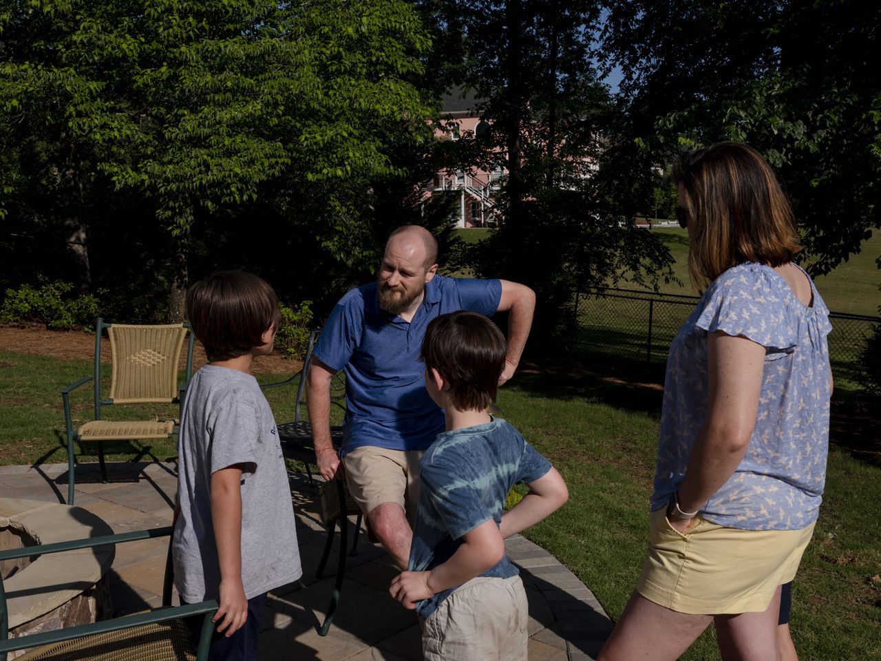 “你們的表親來啦!“加德納的丈夫羅斯·加德納向三個兒子喊道。普法夫的孩子們跑向後院鞦韆加入玩耍。午餐時,加德納準備了沙拉、玉米餅皮、豆類和雞肉。大人們正商量着讓6歲、8歲和9歲的加德納家男孩今年夏天去普法夫家過夜的計劃。