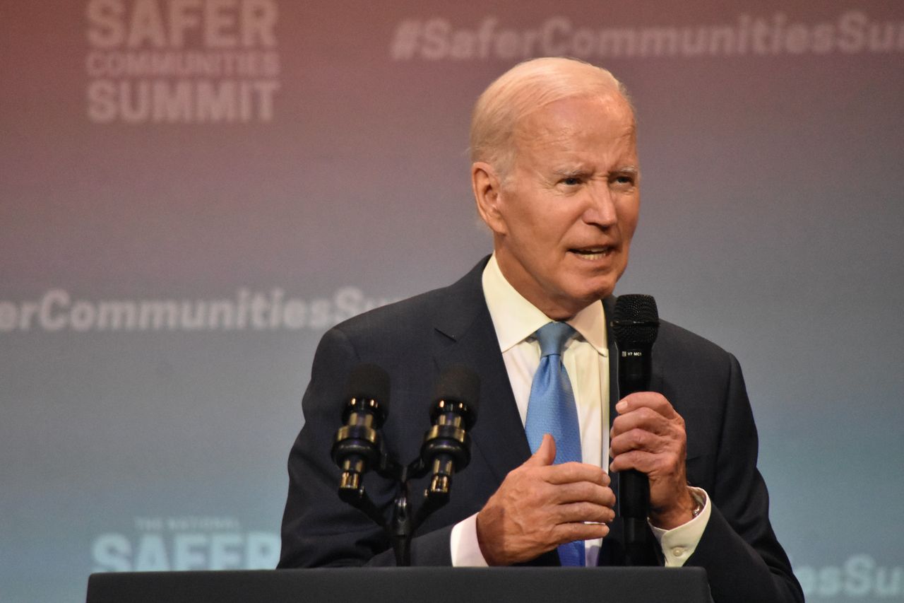 喬·拜登6月16日在康涅狄格州西哈特福德講話。圖片來源:凱爾·馬紮/祖瑪通訊社刊載於2023年6月20日印刷版,標題為《天佑女王與拜登的外交政策》。