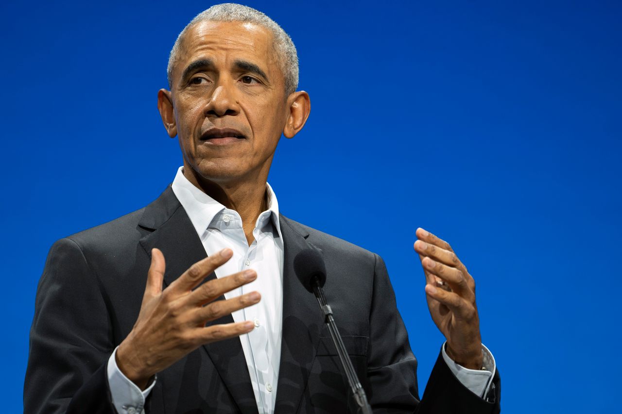 前總統巴拉克·奧巴馬2022年11月17日在紐約發表講話。圖片來源:約翰·明奇洛/美聯社刊登於2023年6月21日印刷版,標題為《為何巴拉克·奧巴馬害怕蒂姆·斯科特》。