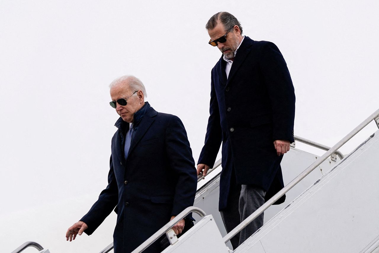 去年冬天,美國總統喬·拜登和兒子亨特·拜登在紐約州錫拉丘茲的漢考克機場空軍國民警衞隊基地走下空軍一號。圖片來源:ELIZABETH FRANTZ/REUTERS那些向多個與拜登家族有關聯的實體輸送數百萬美元的 shady 外國寡頭們,究竟得到了什麼回報?選民們仍在等待答案,而拜登家族各種斂財計劃中的關鍵人物似乎已與拜登政府達成了認罪協議。