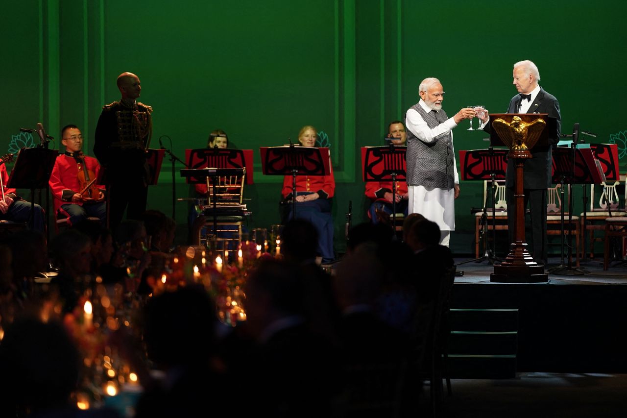 印度總理納倫德拉·莫迪此訪的重頭戲是週四晚在白宮舉行的國宴。圖片來源:Stefani Reynolds/Agence France-Presse/Getty Images兩國加強合作的動向源於印度在美國對抗中國行動中的戰略重要性,以及美國遏制俄羅斯在發展中國家影響力的意圖。