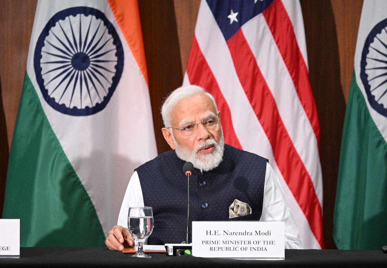 印度總理納倫德拉·莫迪6月21日在弗吉尼亞州亞歷山大市發表演講。圖片來源:曼德爾·南安/法新社/蓋蒂圖片社刊載於2023年6月23日印刷版,標題為《美國能依賴莫迪領導的印度嗎?》。
