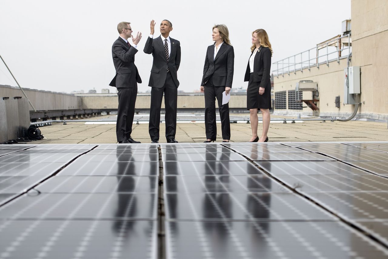 2015年,凱特·勃蘭特(右)與巴拉克·奧巴馬總統、能源部副部長利茲·舍伍德-蘭德爾(右二)以及能源部經理埃裏克·豪克達爾(左)在華盛頓能源部總部。圖片來源:布倫丹·斯米亞洛夫斯基/法新社/蓋蒂圖片社凱特·勃蘭特自2015年以來一直致力於使谷歌的運營和產品更具可持續性,並於2018年被任命為首席可持續發展官。這家科技公司的運營自2007年以來一直保持碳中和,去年其總碳足跡為1140萬噸二氧化碳當量。