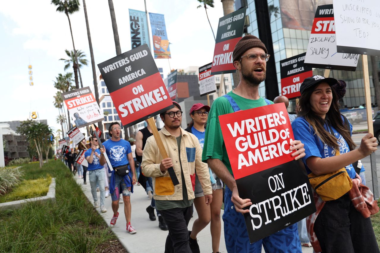 美國編劇工會(WGA)的訴求與美國導演工會(DGA)部分相似,包括提高薪資和改善流媒體剩餘收益分配。編劇們還通過要求節目組僱傭最低數量的編劇來尋求更大的工作保障。