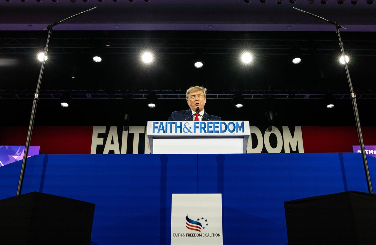 前總統唐納德·特朗普去年在田納西州納什維爾舉行的信仰與自由聯盟活動上發表主旨演講。圖片來源:塞斯·赫拉德/蓋蒂圖片社特朗普要到週六晚上才會在信仰與自由聯盟集會上發言,但他顯然是週五最受歡迎的人選——當北卡羅來納州副州長馬克·羅賓遜宣佈支持這位前總統時,現場爆發的掌聲就是明證。“國家正處於戰爭中,“他説,“我們需要一位戰士。”