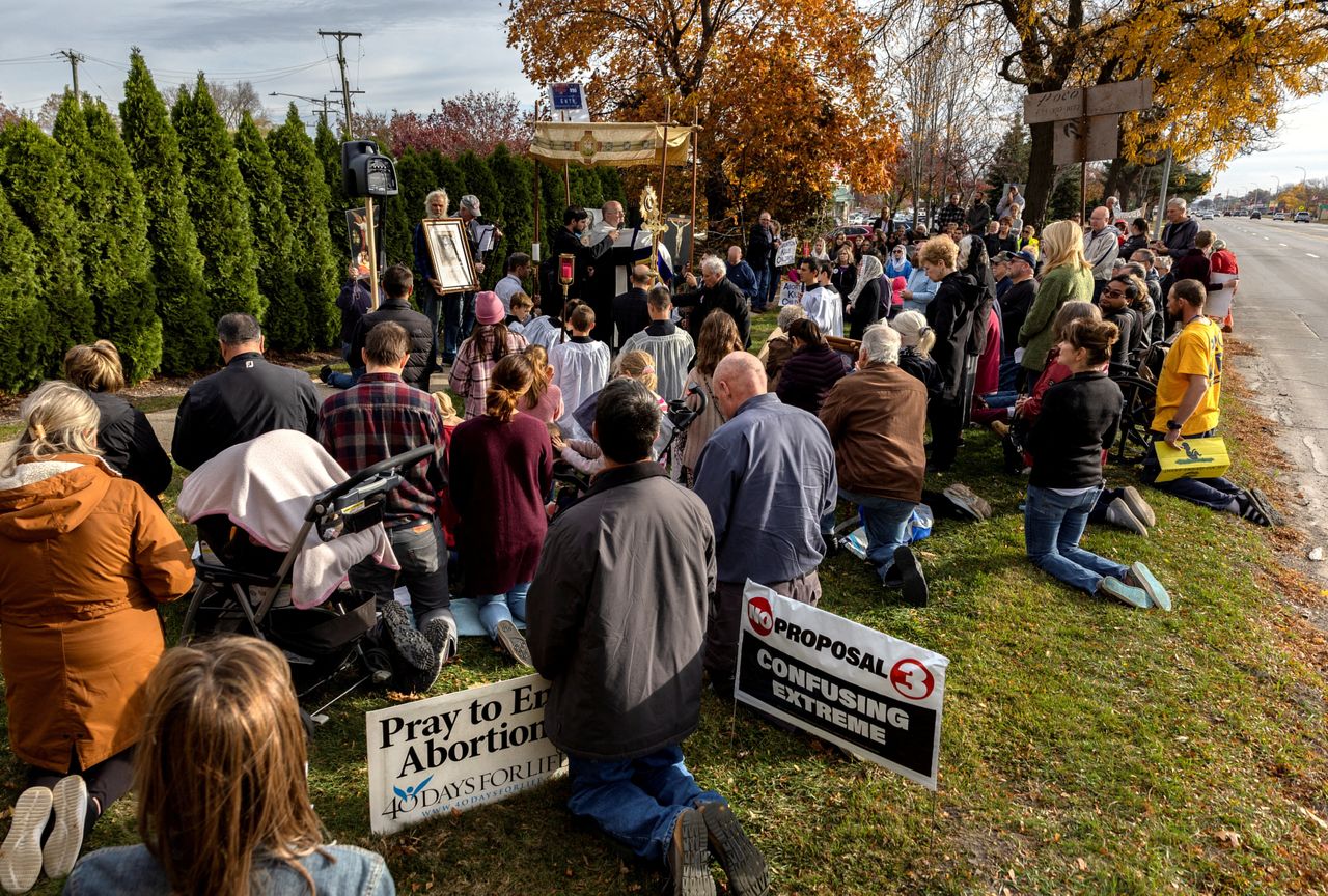 11月,示威者在密歇根州韋斯特蘭集會,抗議一項將墮胎權編入法典的州投票措施。圖片來源:EVELYN HOCKSTEIN/REUTERS