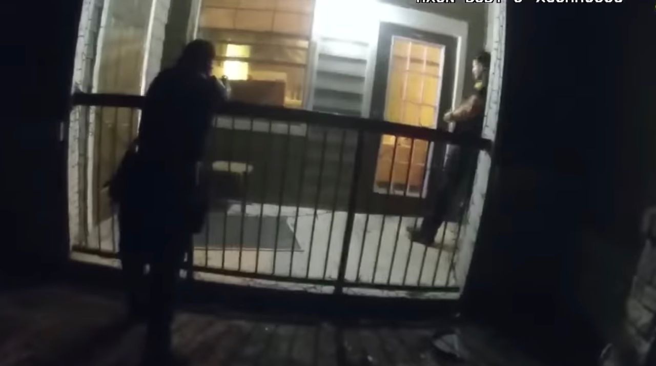 聖安東尼奧警察局公佈的隨身攝像機視頻截圖顯示,警員們站在梅麗莎·佩雷斯的公寓內。圖片來源:聖安東尼奧警察局週六,三名聖安東尼奧警員在保釋後獲釋,此前一天他們在一名持錘女子家中將其擊斃。
