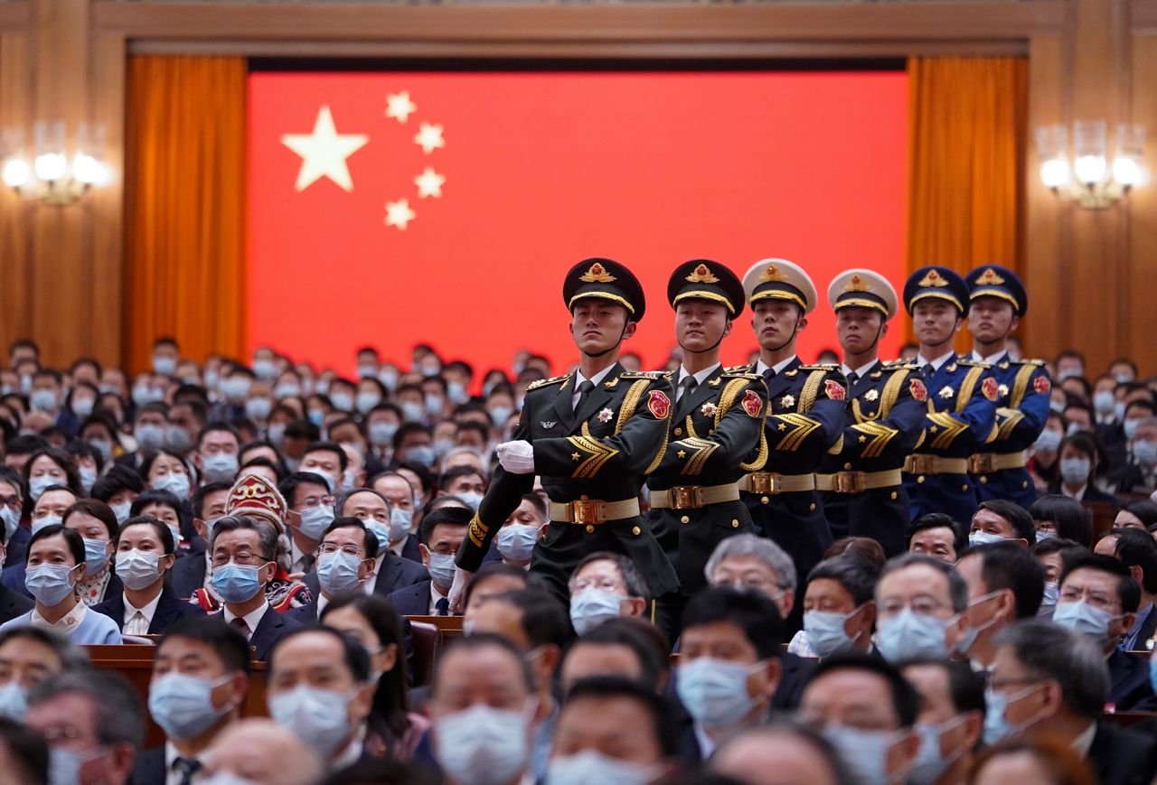 3月10日,中國人民解放軍儀仗隊在北京某典禮上行進。照片:嚴巖/Zuma Press刊登於2023年6月27日印刷版,標題為《我對抗中國威脅的計劃》。