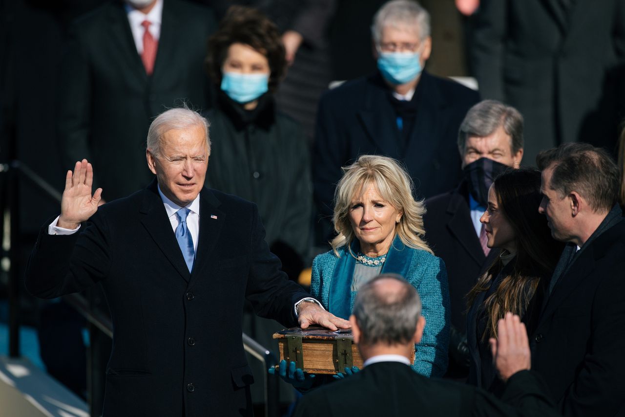 在總統就職典禮上與吉爾·拜登同台的喬·拜登正被建議將年齡視為優勢。圖片來源:《華爾街日報》Alyssa Schukar卡岑伯格與拜登高級團隊保持頻繁聯繫。近期訪問華盛頓時,他與白宮高級幕僚詹妮弗·奧馬利·狄龍、史蒂夫·裏凱蒂等人磋商,並會見了競選經理朱莉·查韋斯·羅德里格斯。