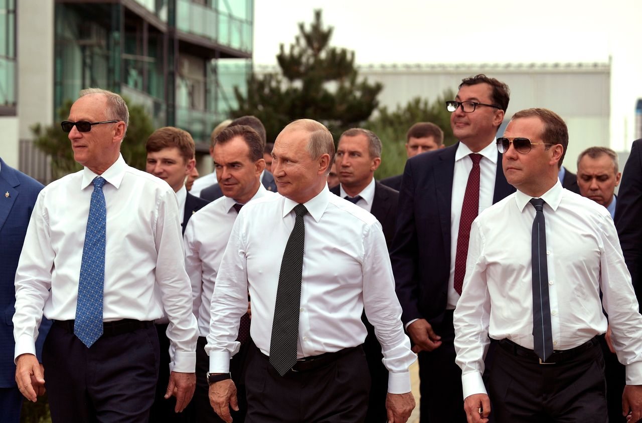俄羅斯安全會議秘書尼古拉·帕特魯舍夫、總統普京與安全會議副主席梅德韋傑夫圖片來源:Alexei Nikolsky/Sputnik/Kremlin Pool
