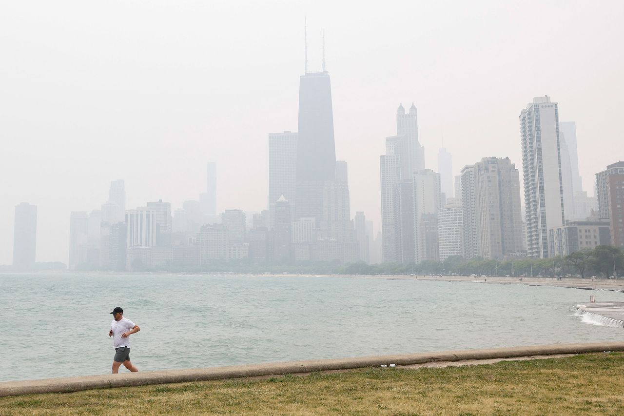 芝加哥一名跑步者正經歷來自加拿大的野火煙霧。圖片來源:kamil krzaczynski/法新社/蓋蒂圖片社聯繫作者Alyssa Lukpat請致信 [email protected]