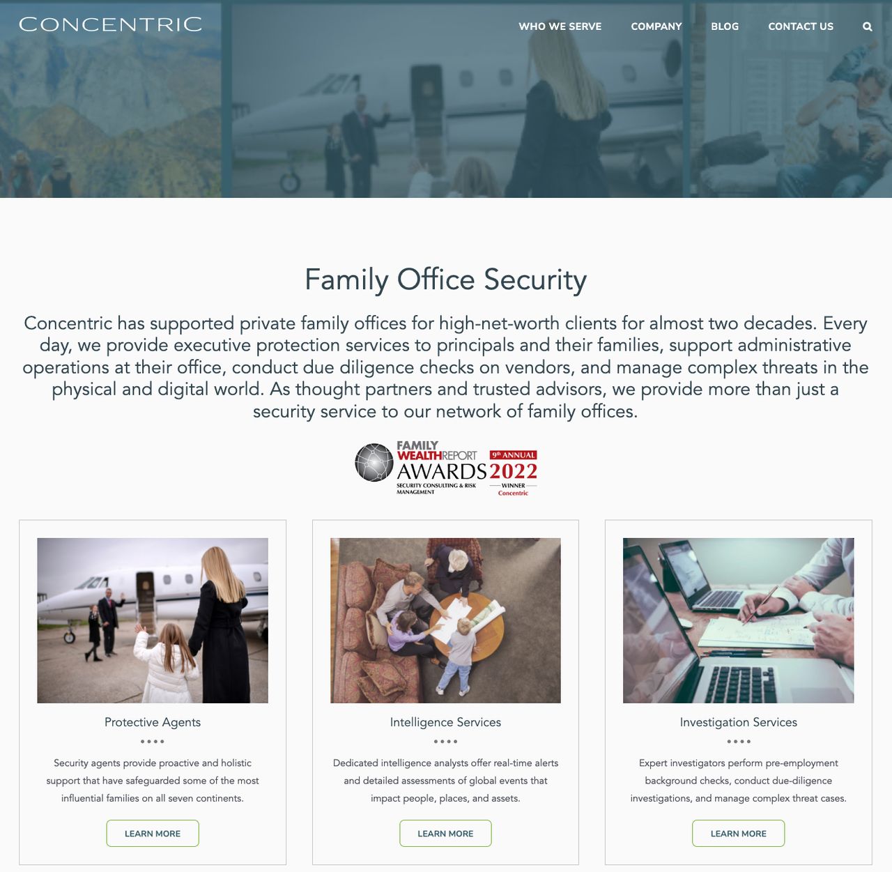 Concentric總部與蓋茨風險投資公司同位於華盛頓州柯克蘭市的一處湖畔辦公園區。圖片來源:PictometryConcentric自稱是一家風險管理公司,其團隊中有多名前中央情報局和聯邦調查局官員。據其網站介紹,該公司近二十年來一直為家族辦公室服務,提供入職前背景調查,並防範具有"潛在惡意動機"人士帶來的風險。