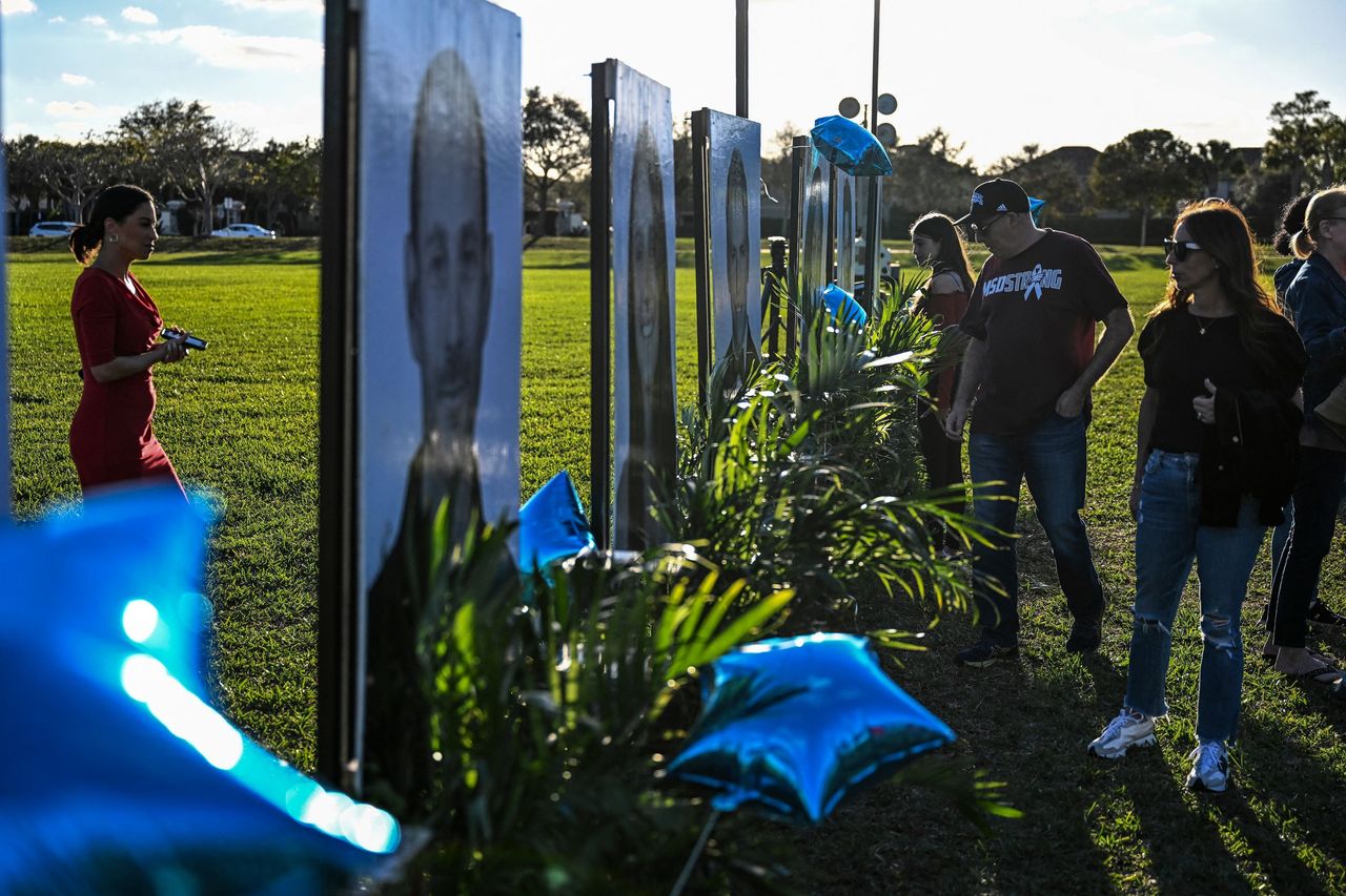 2月,在佛羅里達州帕克蘭校園槍擊案五週年之際,人們設立了一座紀念碑以紀念遇難者。圖片來源:chandan khanna/Agence France-Presse/Getty Images彼得森的律師稱,槍擊案當天,彼得森在辦公室時有人通知他,有報告稱聽到了類似鞭炮的巨大聲響。根據州政府的調查,當他到達槍手正在殺害受害者的三層1200號樓時,他沒有進入,而是撤退到相鄰大樓外的位置。