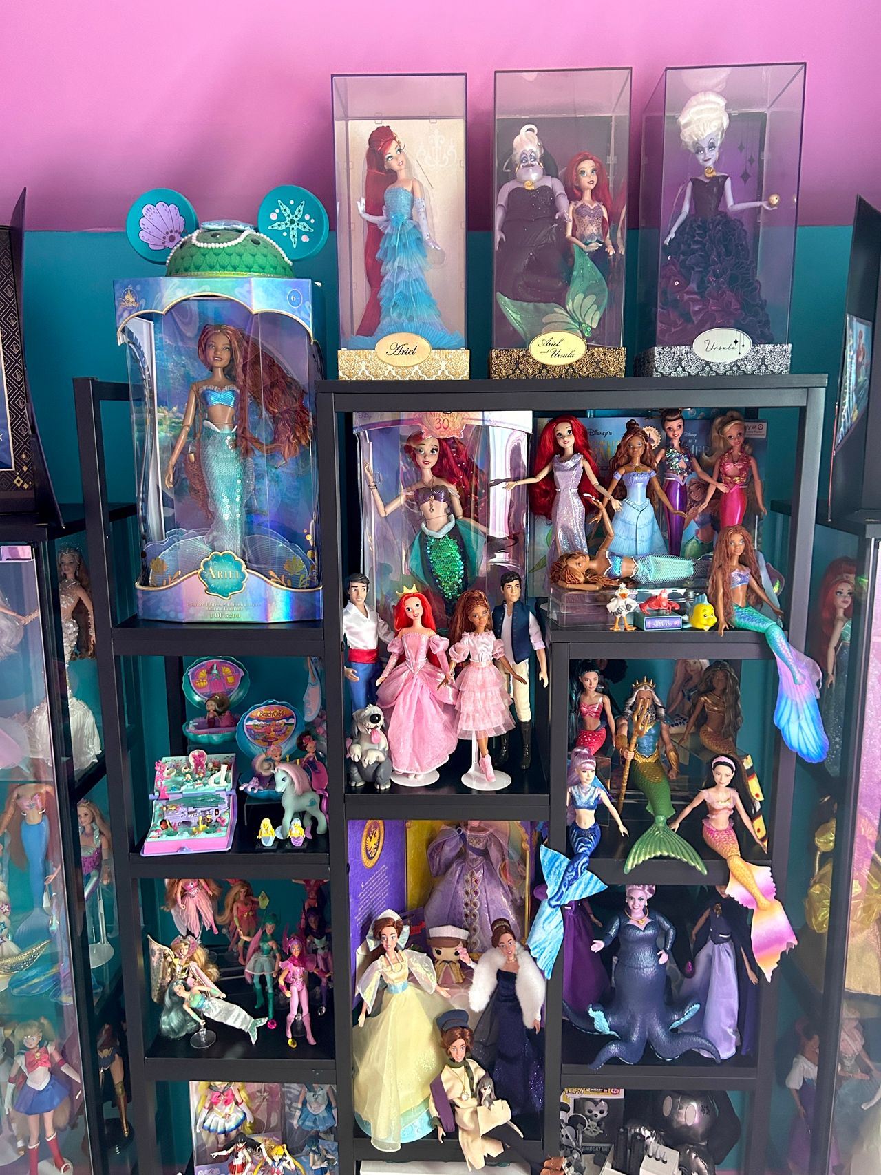馬修·布魯諾-理查森的部分娃娃收藏。圖片來源:Tiny Siren Animation, 2023“芭比聯名款完全符合我的期待,”擁有一件Old Navy芭比T恤的龐特説道,“我們想要粉色、塑料感和少女風,就像成年人穿着童裝一樣。”