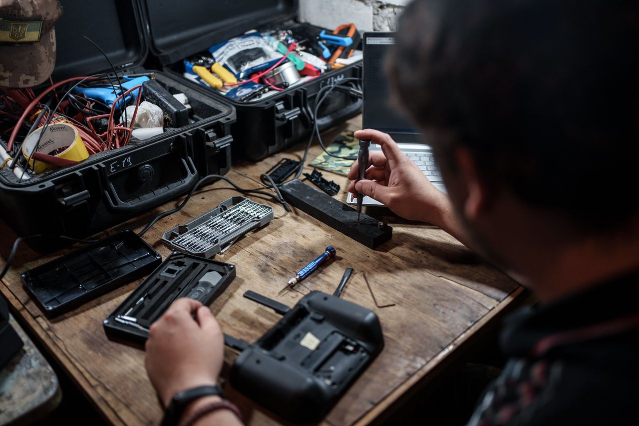 正在維修的無人機部件。烏軍正使用西方遠程武器打擊佔領區縱深的俄軍補給線。上週,英國巡航導彈摧毀了克里姆林宮用於從2014年吞併的克里米亞向烏南部前線運輸物資的關鍵橋樑。
