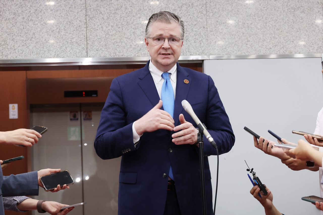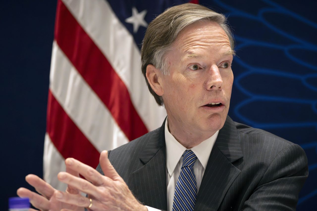 美國駐華大使尼古拉斯·伯恩斯本月早些時候在北京美國大使館舉行的氣候金融圓桌討論會上發言。圖片來源:mark schiefelbein/pool/Shutterstock據知情人士透露,與北京有關的黑客入侵了美國駐華大使尼古拉斯·伯恩斯的電子郵件賬户,據信此次攻擊至少泄露了數十萬封美國政府個人郵件。