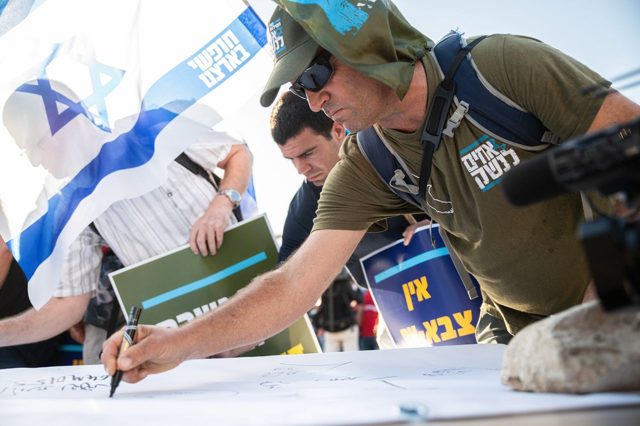 以色列預備役軍人在特拉維夫簽署聲明。圖片來源:Matan Golan/SOPA/Zuma Press### 這會影響以色列與美國的關係嗎?