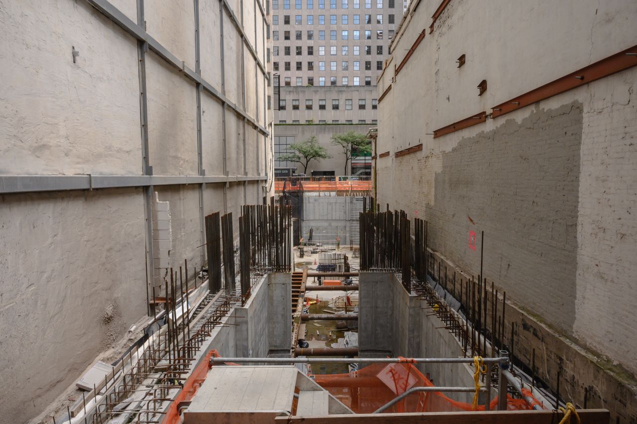 曼哈頓西47街與48街之間一處酒店施工現場。在紐約市,關於微小或看似無價值地塊所有權的爭奪可能在法庭上持續數年。幾英寸的戰略性空間可能藴含遠超其尺寸的價值。