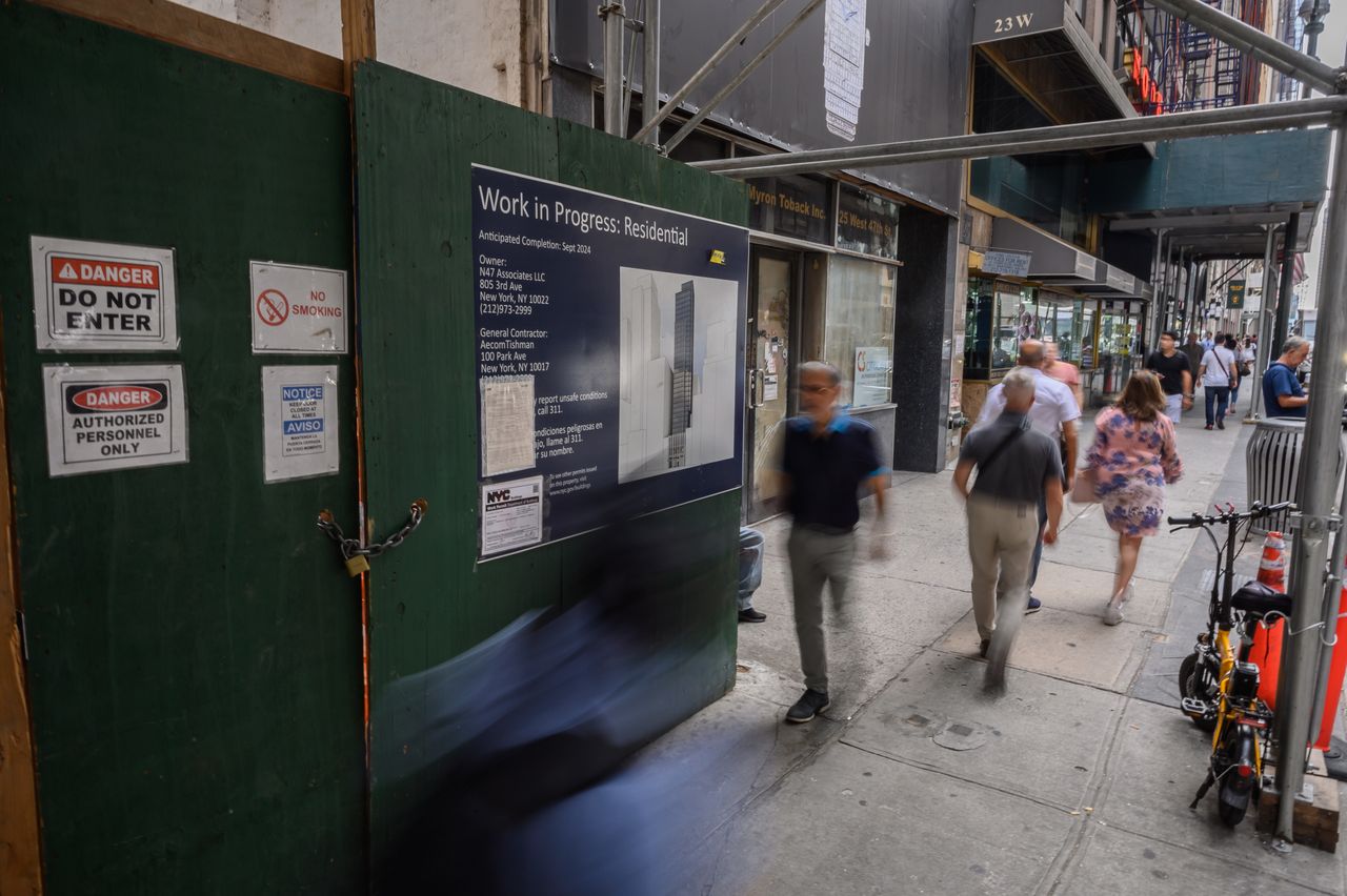 行人經過Extell建築工地西47街入口聯繫記者科琳·雷米:[email protected];卡姆·波拉克:[email protected]