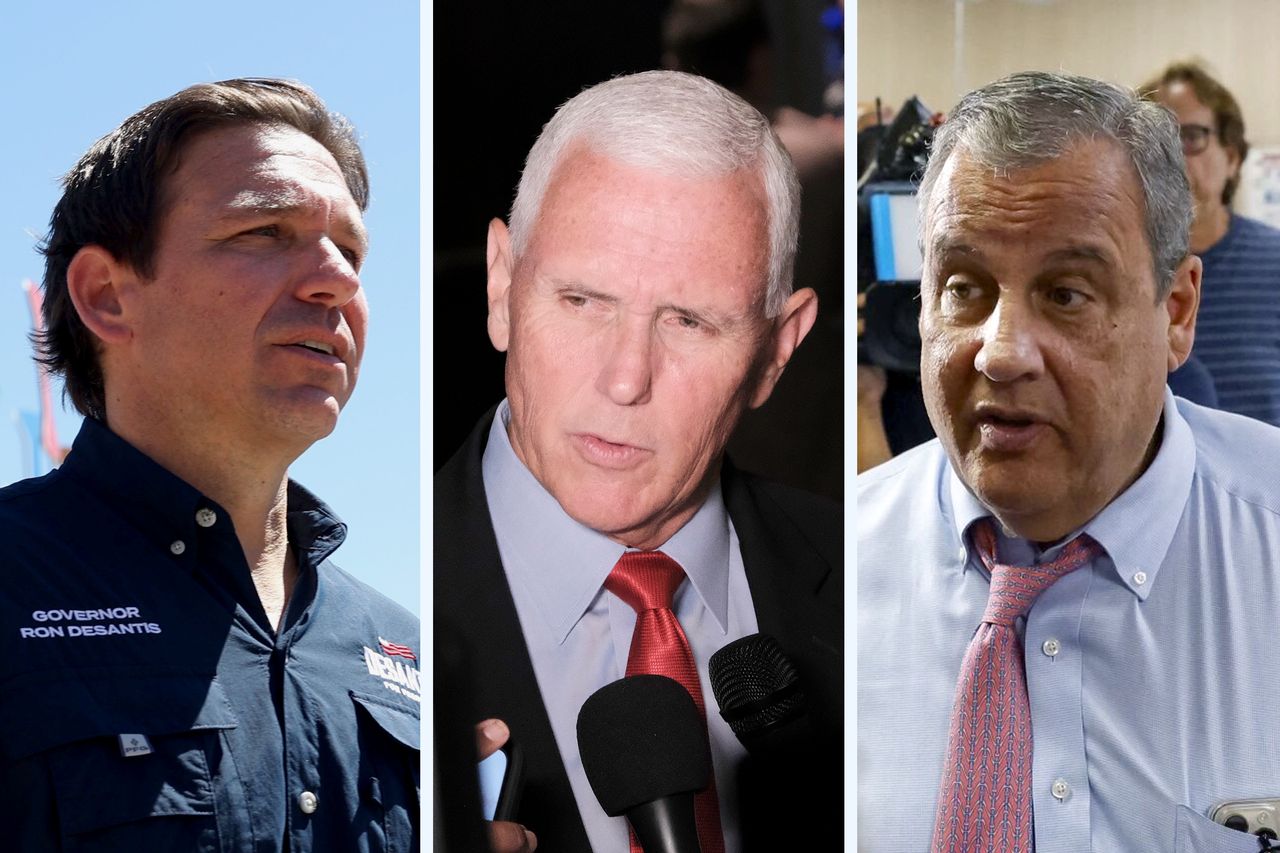 羅恩·德桑蒂斯、邁克·彭斯和克里斯·克里斯蒂將參加本週辯論。圖片來源:Alex Wroblewski/Zuma Press; John Arthur Brown/Zuma Press; Eva Marie Uzcategui/Bloomberg News前副總統邁克·彭斯與新澤西州前州長克里斯·克里斯蒂雖對特朗普持批判態度,但收效甚微。彭斯因拒絕屈從特朗普阻止認證拜登勝選的壓力,已多次遭遇選民嗆聲。