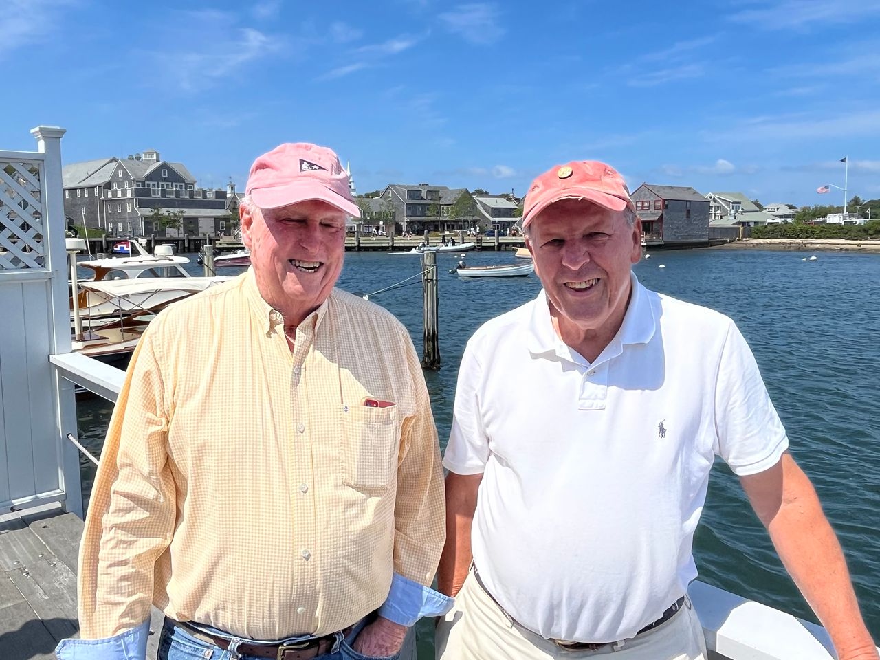 彼得·霍姆斯(穿白襯衫者)與朋友在楠塔基特島上。圖片來源:彼得·霍姆斯"我認為智慧是值得探討的,無論好壞,智慧往往隨着年齡增長而來,“他説。