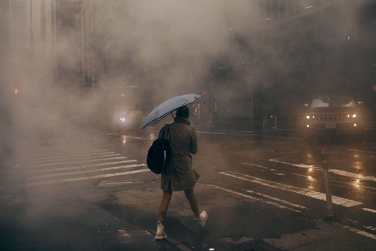 來自皇后區的道格·伯恩翻出他的厚重靴子和雨衣,艱難跋涉15個街區去上班。
