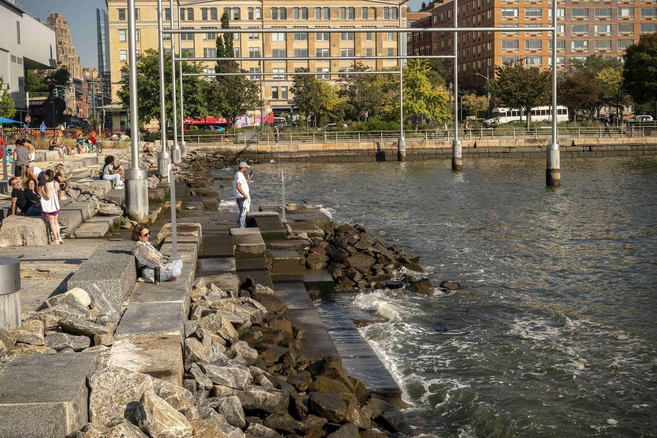 請勿下水。另一個則是郵票大小的避風港,享有自由女神像、哈德遜河和新澤西日落的壯麗景色。風聲和輕柔的水聲被警笛聲和附近直升機停機坪頻繁起降的轟鳴聲打斷。西區高速公路的交通噪音近在咫尺,彷彿飛盤一擲可及。