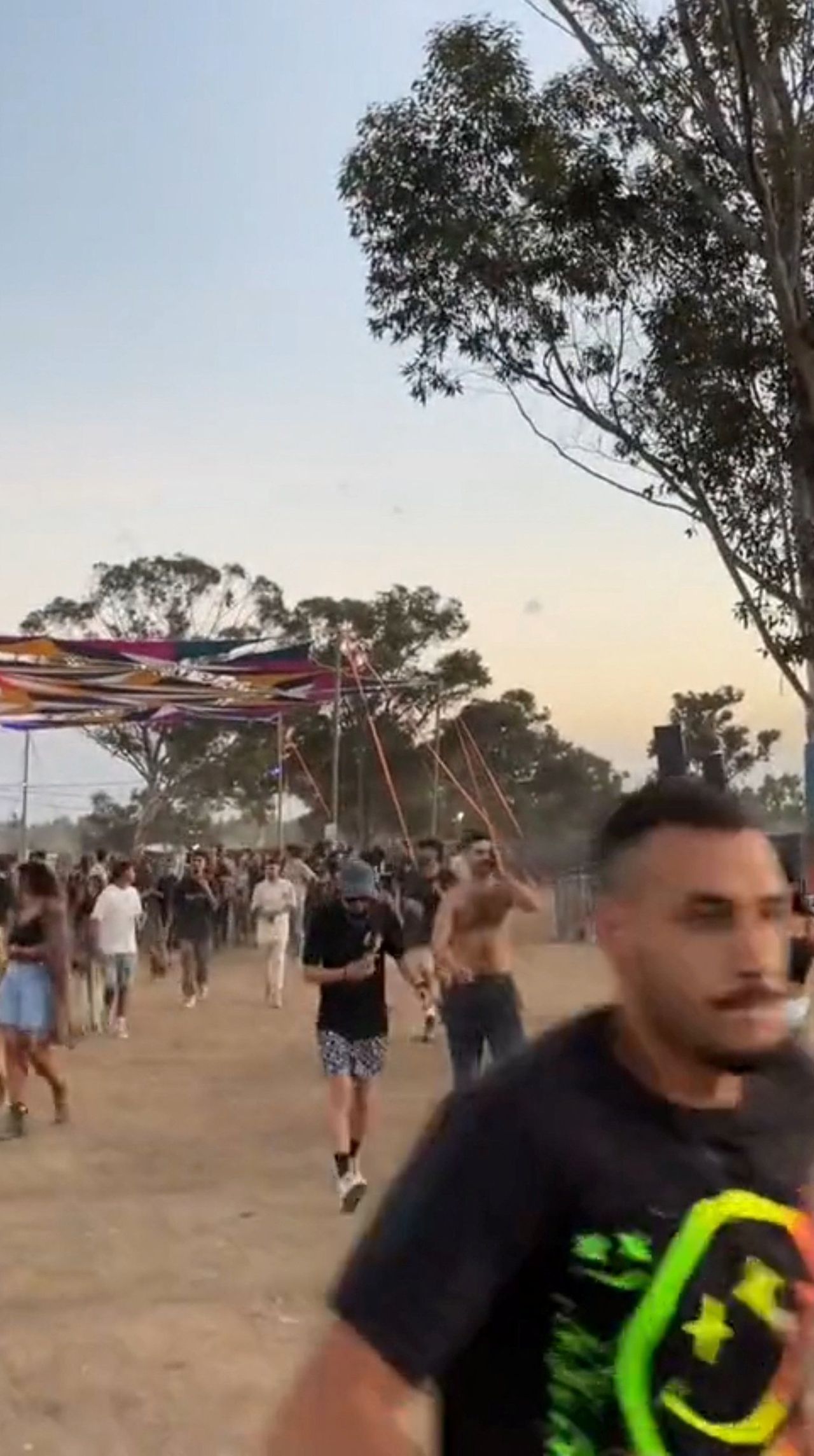 社交媒體視頻顯示,10月7日以色列雷姆基布茲附近,參加Nova部落音樂節的平民正在逃離哈馬斯武裝分子。圖片來源:路透社獲取的視頻/Reuters刊載於2023年10月13日印刷版,原標題《超越Instagram戰爭》