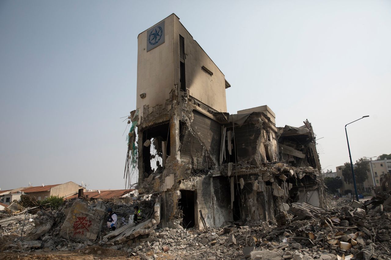 以色列斯德洛特一處警察局廢墟,攝於週日以軍與哈馬斯武裝分子交戰後。照片:阿米爾·利維/蓋蒂圖片社