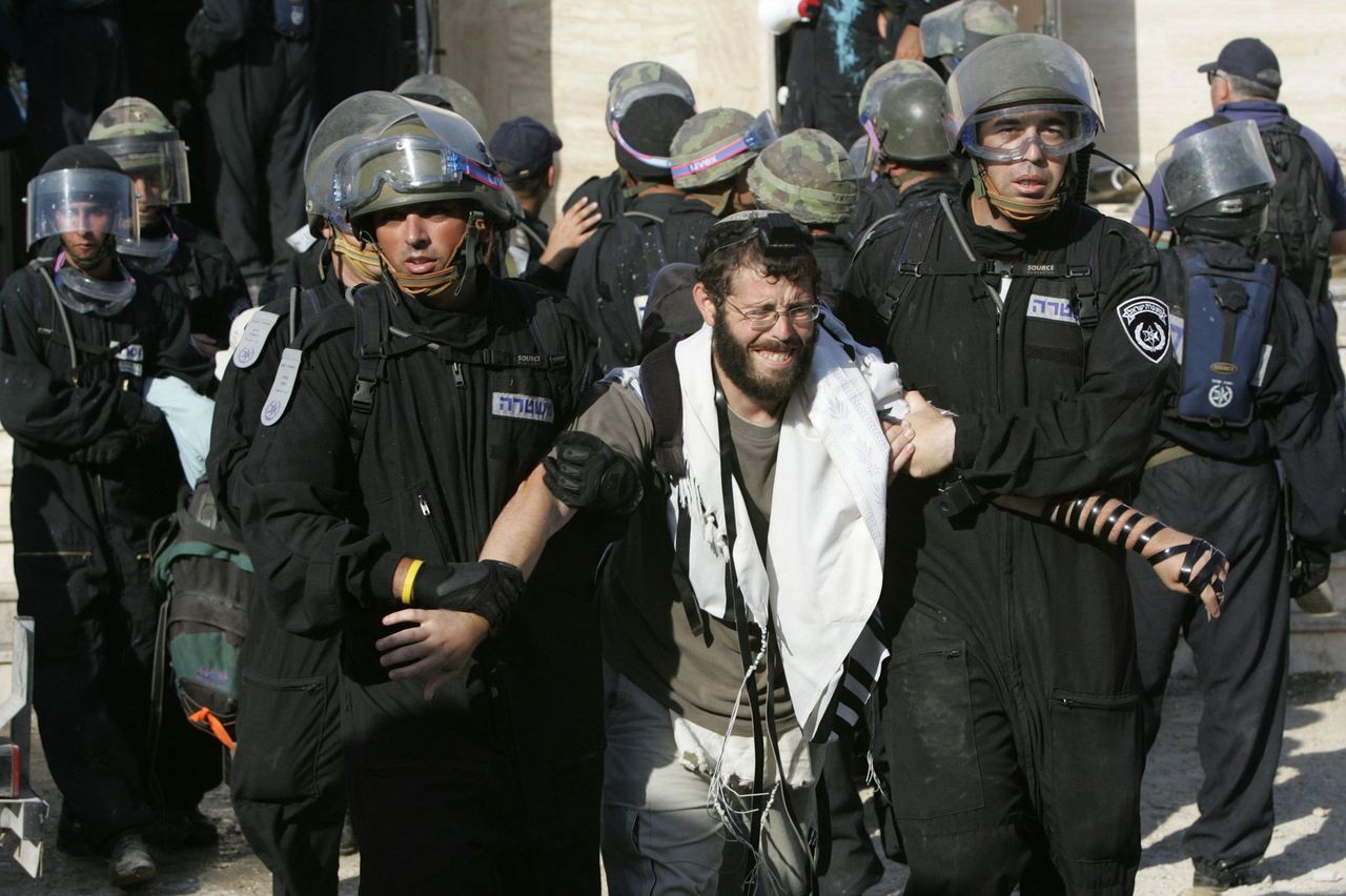 2005年加沙定居點強制撤離期間,一名猶太定居者在以軍安全部隊清場行動後被帶離,當時抗議者正抵制撤離。圖片來源:米納赫姆·卡哈納/法新社/蓋蒂圖片社第三種可能是以色列為美國支持的巴勒斯坦權力機構重新掌權鋪路,該機構目前管理約旦河西岸地區。