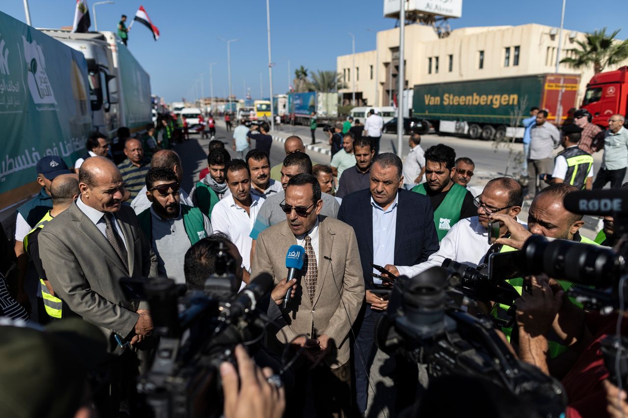 埃及北西奈省省長週日向媒體發表講話。圖片來源:Mahmoud Khaled/Getty Images“埃及有權擔心巴勒斯坦人無法返回加沙,”皇家聯合軍種國防與安全研究所的中東地區安全專家H.A. Hellyer説。“令人驚訝的是,作為加沙負責方的以色列竟然説埃及應該開放其走廊。”