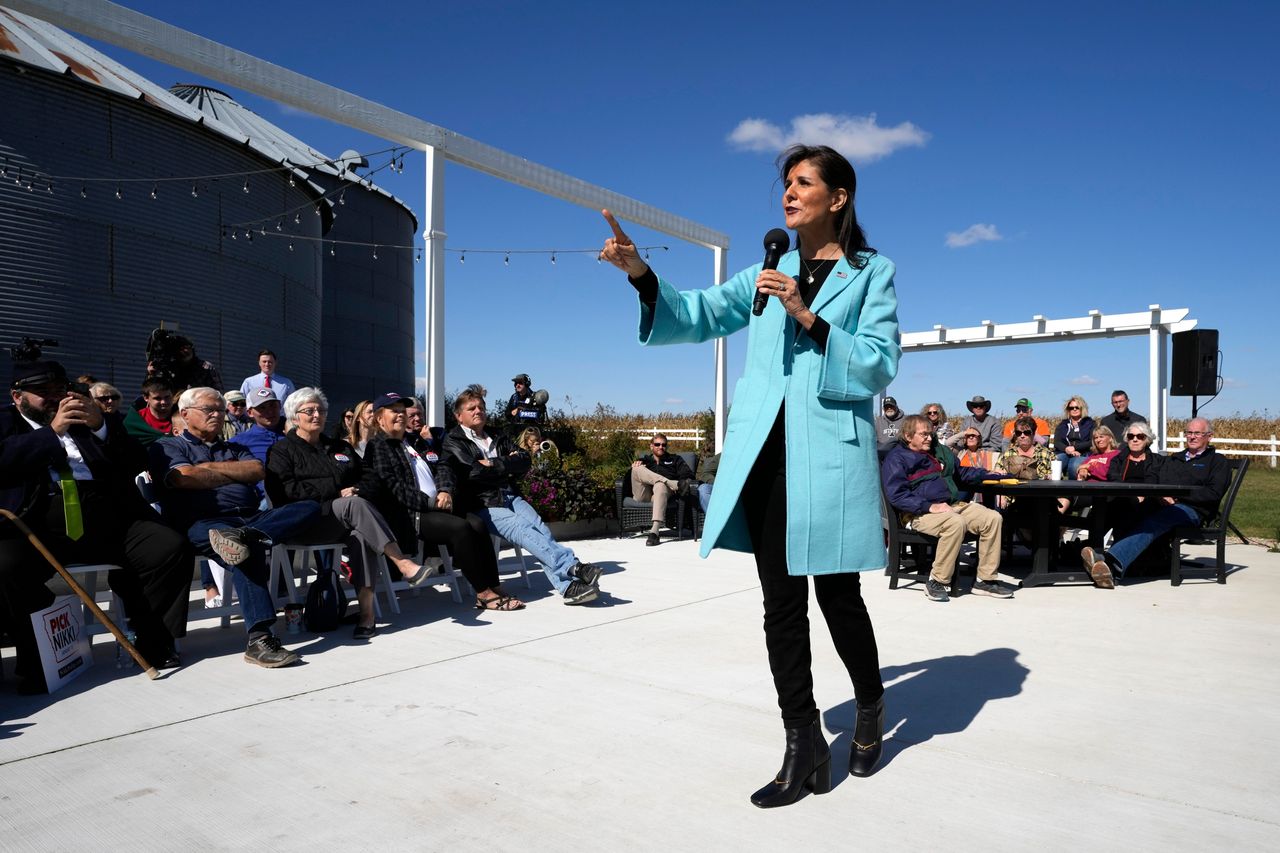 共和黨總統候選人、前南卡羅來納州州長尼基·黑利上週在愛荷華州競選時表示,哈馬斯"必須被消滅”。圖片來源:查理·內伯格/美聯社數十年來,堅定支持以色列一直是共和黨綱領的核心內容。