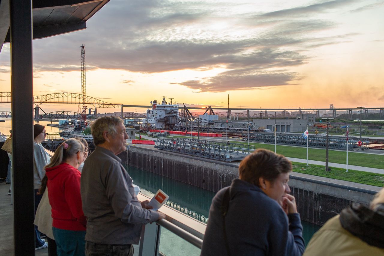聖瑪麗河這條70英里長的水道每日都有船隻如編排好的隊列般穿梭往返,將蘇必利爾湖與休倫湖相連,春夏季此景尤為常見。冬季因河道凍結,船閘停止通航,進入集中檢修期。美國陸軍工兵部隊每年投入數千萬美元維護該體系。