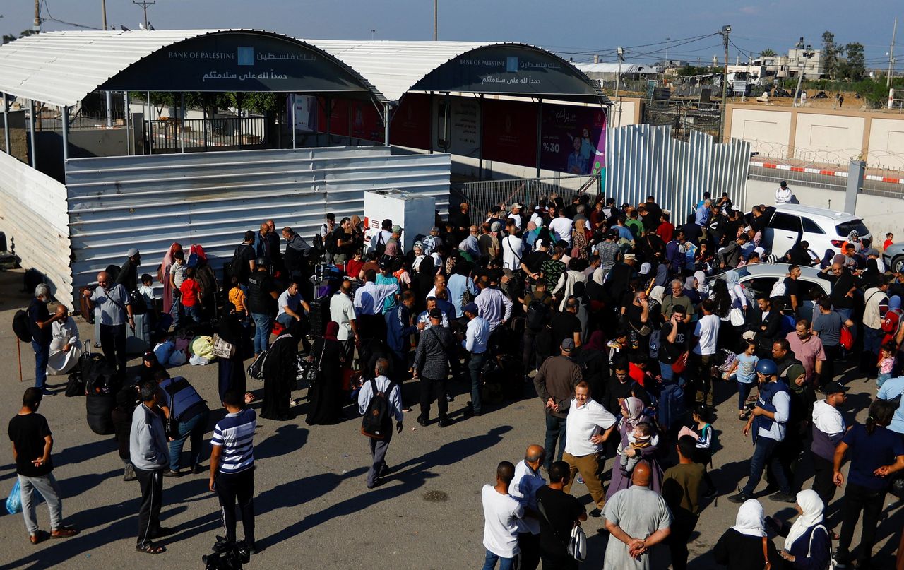 擁有雙重國籍的巴勒斯坦人聚集在拉法與埃及接壤的邊境口岸,希望能獲准離開加沙。圖片來源:ibraheem abu mustafa/Reuters
