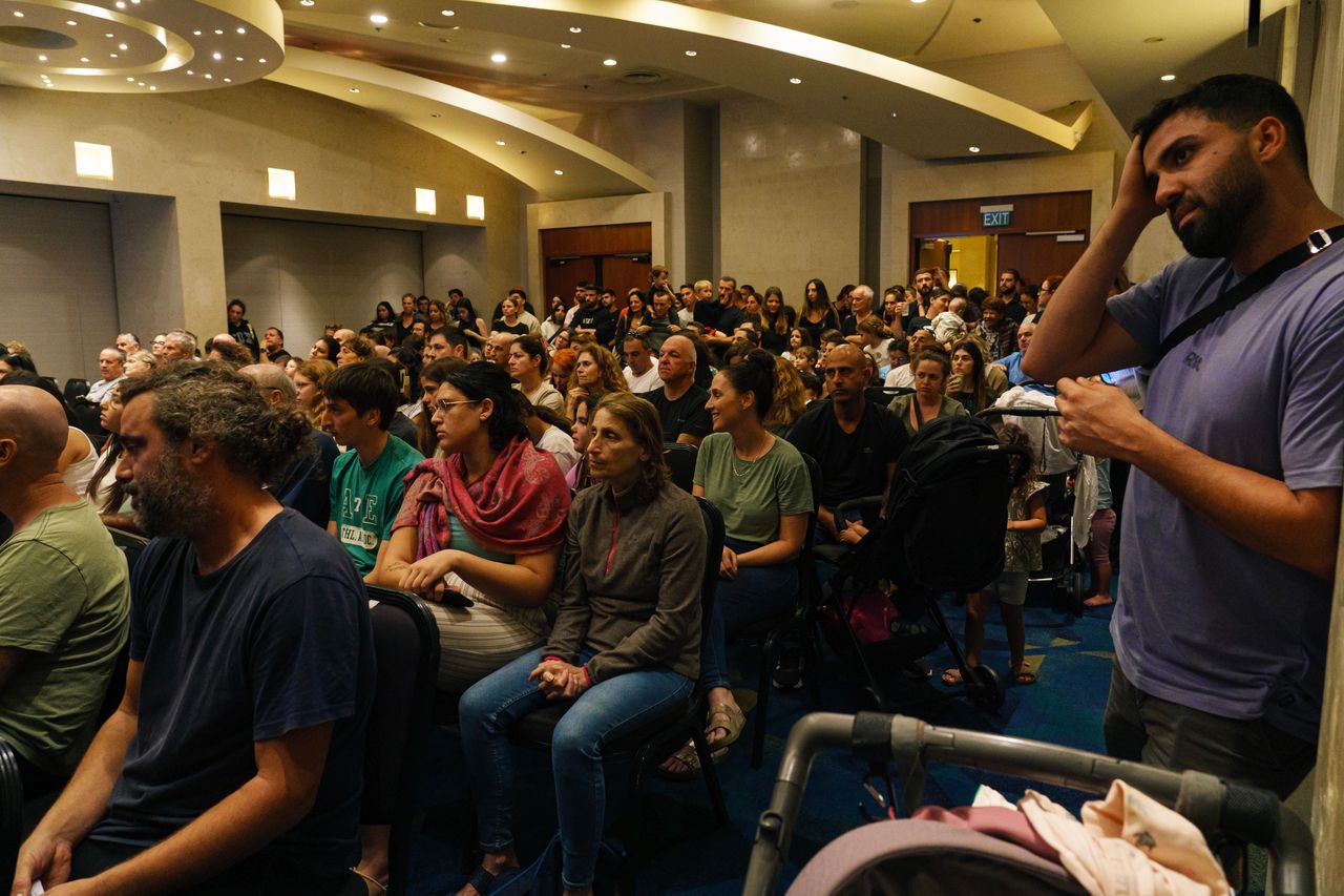 梅法西姆基布茲的撤離民眾聚集在以色列赫茲利亞丹阿卡迪亞酒店開會。圖片來源:瑪雅·萊文/華爾街日報在十餘名居民(多為以色列退伍士兵)多年來的防衞準備下,梅法西姆基布茲無一人遇難或被劫持。