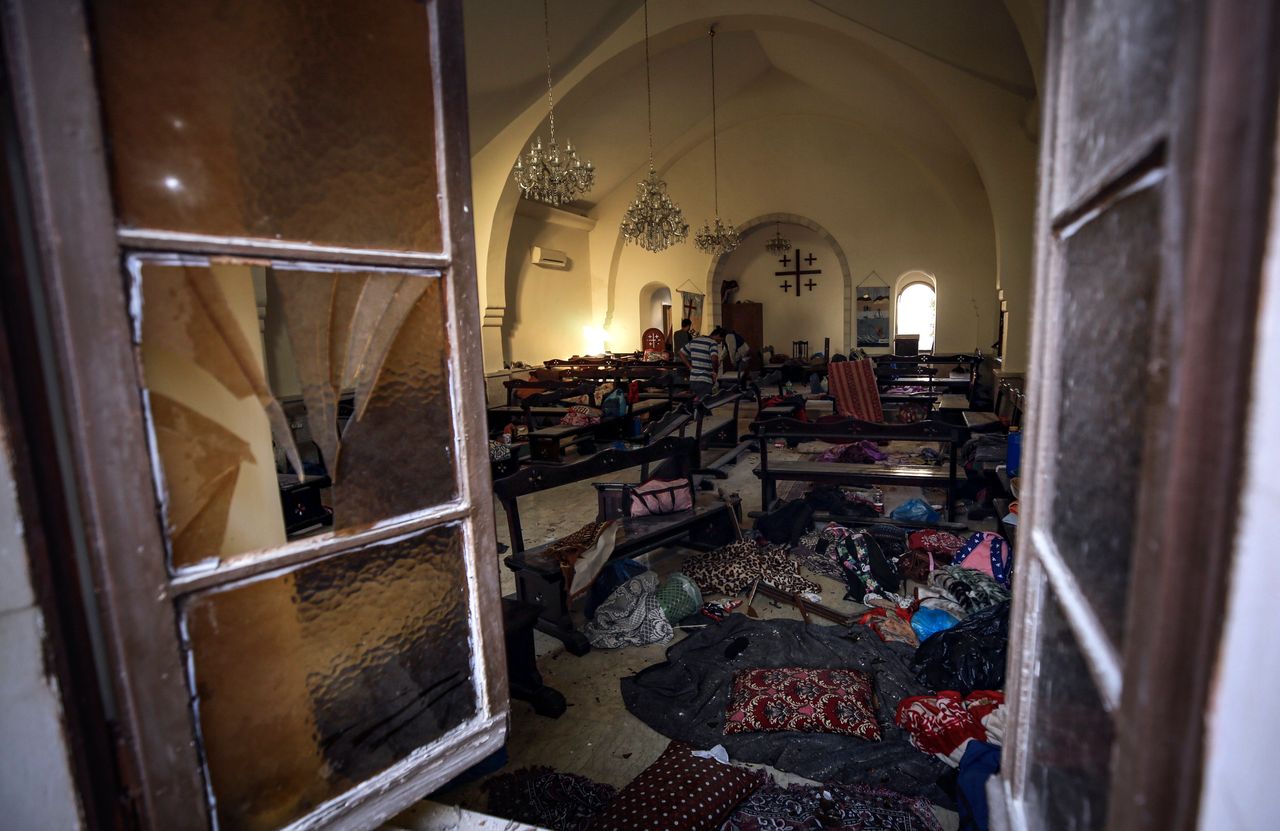 週二爆炸發生前,巴勒斯坦人將加沙醫院的禮拜堂用作避難所。圖片來源:Abed Khaled/Associated Press倫敦智庫皇家聯合軍種研究所分析師賈斯汀·布朗克表示,公開圖像也缺乏以軍空襲炸彈特有的彈片分佈特徵。