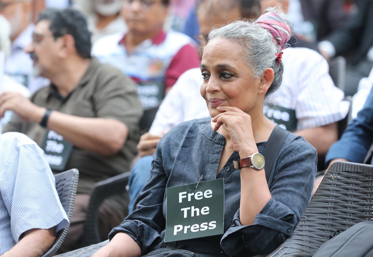 上週,官員批准可能對獲獎小説家、納倫德拉·莫迪政府的直言批評者阿蘭達蒂·洛伊提起訴訟。圖片來源:harish tyagi/Shutterstock“恐怖主義指控是對媒體自由的威脅的全新層面,”古爾岡市前新聞學教授蘇庫馬爾·穆拉利達蘭説,“這本質上要嚴重得多,涉及這些人可能多年無法出獄。”