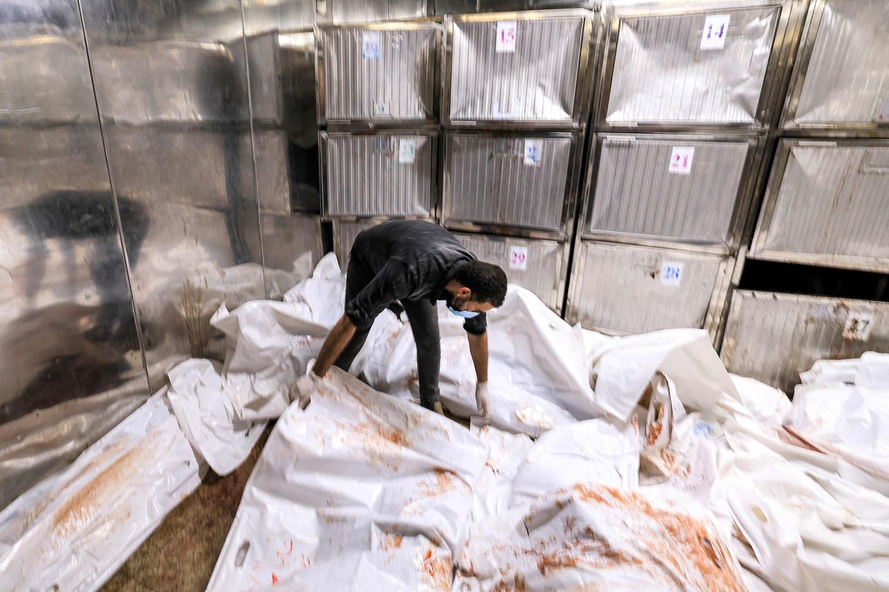 加沙城醫院工作人員正在整理屍袋。圖片來源:Mahmud Hams/Agence France-Presse/Getty Images### 以色列如何解釋爆炸原因?