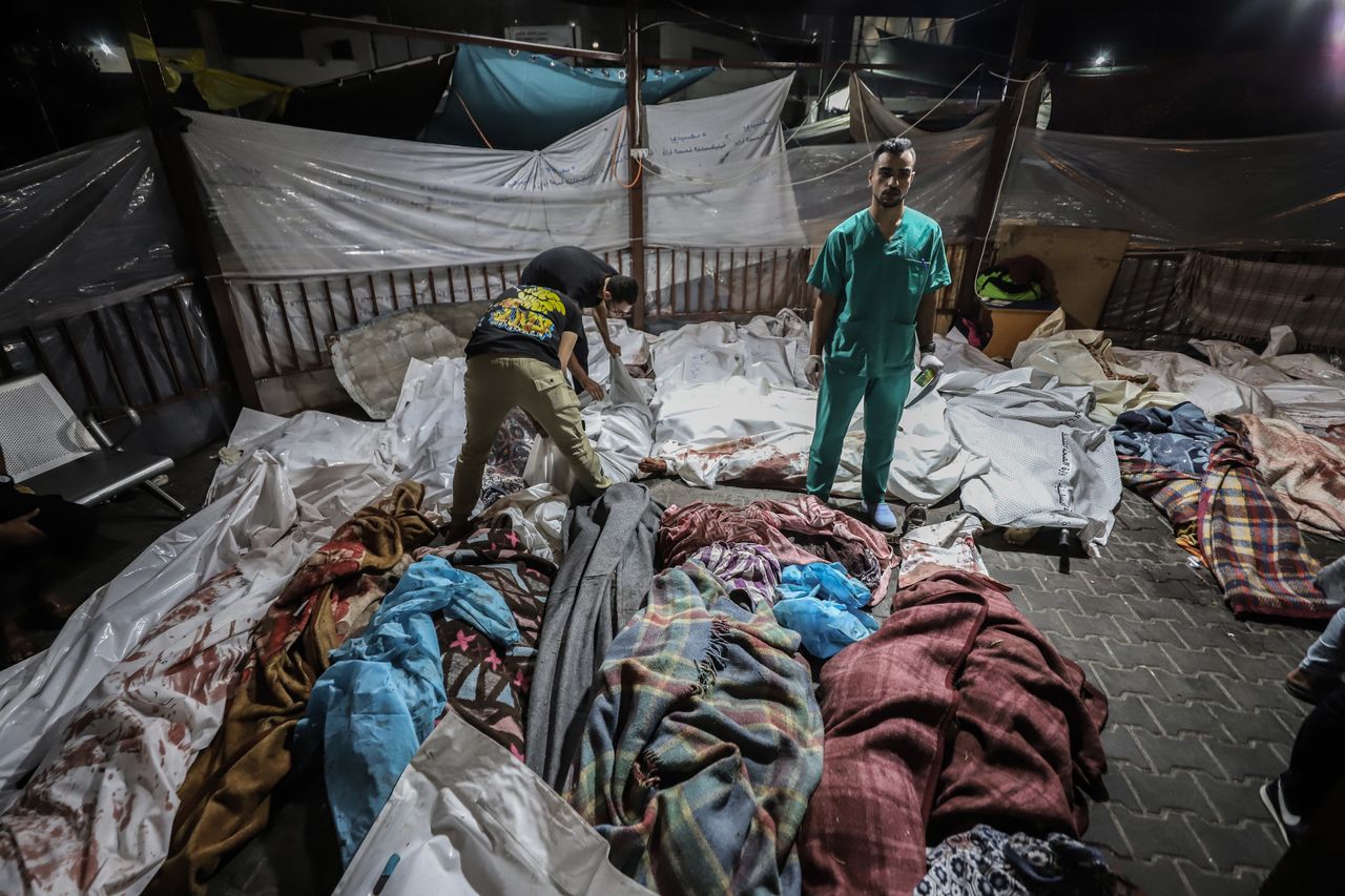 人們站在加沙阿赫利阿拉伯醫院爆炸現場遇難巴勒斯坦人的遺體旁。圖片來源:Mohammad Abu Elsebah/Zuma Press### 這家醫院有何歷史背景?