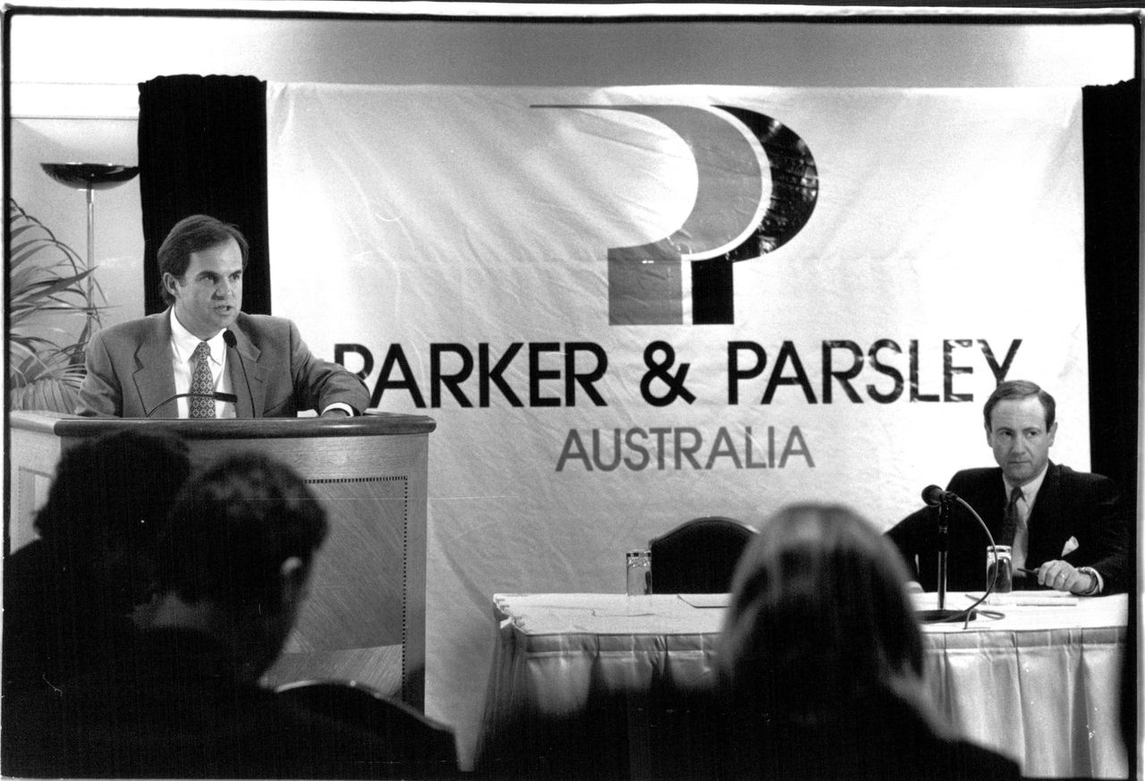 時任帕克帕斯利CEO的斯科特·謝菲爾德1994年在講台宣佈收購布里奇石油公司。圖片來源:安德魯·米爾斯/費爾法克斯媒體/蓋蒂圖片社通過持續聚焦二疊紀盆地——這個曾被埃克森美孚和其他大型石油公司遺棄、一度沉寂的產油區,謝菲爾德發現自己掌握了快速增長的主動權,因為新的鑽探技術和水力壓裂法解鎖了該地區巨量的油氣儲量。今年第二季度,先鋒公司在二疊紀盆地的油氣日產量達到約71.1萬桶,超過了埃克森美孚在該地區不足65萬桶的產量。