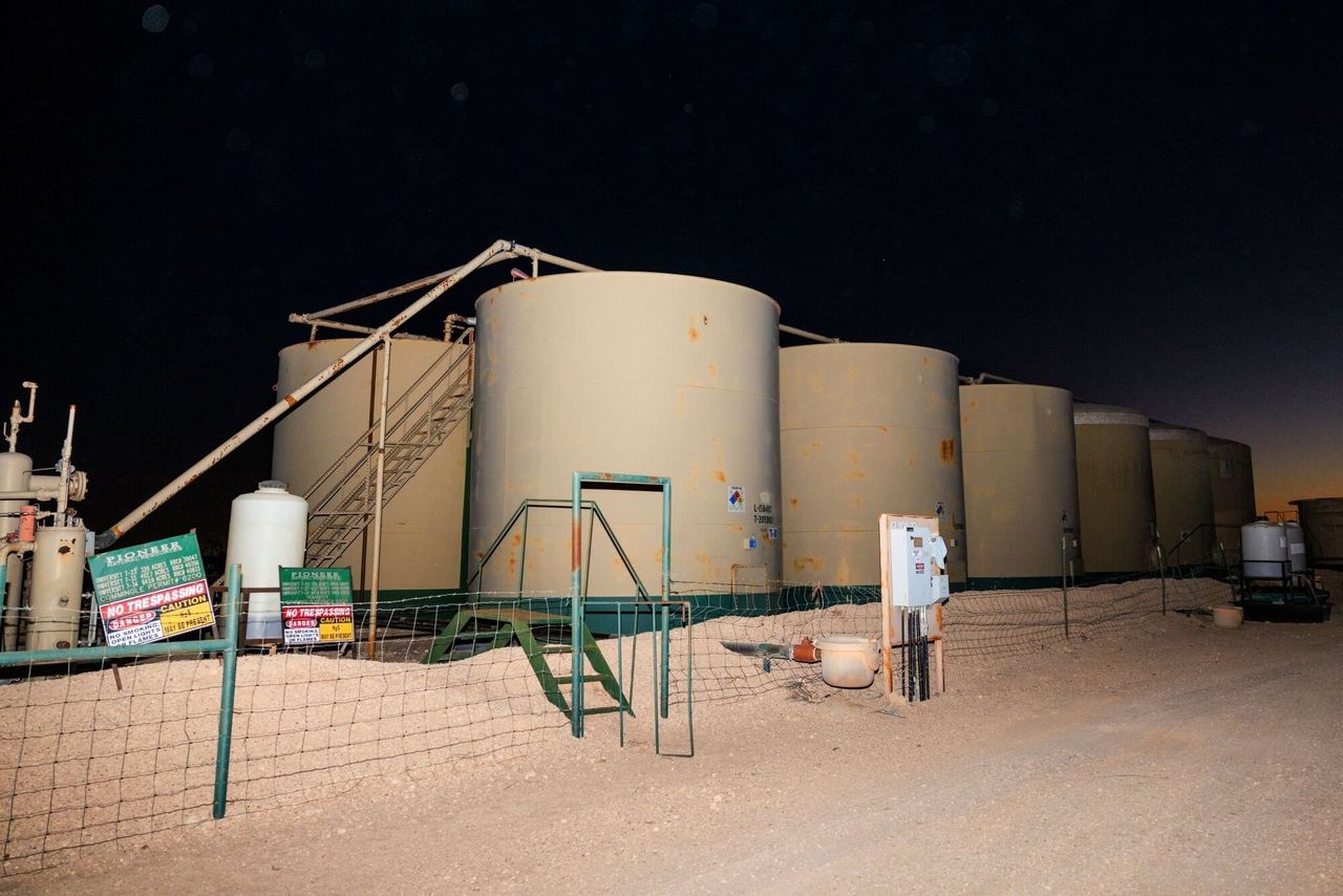 得克薩斯州米德蘭市附近的先鋒自然資源公司原油儲罐。圖片來源:Michael Ciaglo/Bloomberg News
