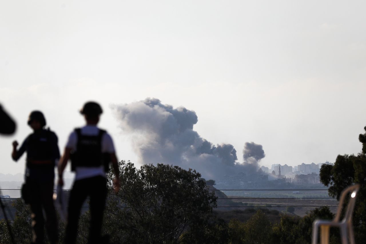 10月14日,記者們注視着加沙地帶北部升起的濃煙。圖片來源:阿提夫·薩法迪/Shutterstock他稱:“我們採取措施提醒記者,戰爭初期的報道往往存在謬誤,需要暫緩判斷以避免草率結論。”
