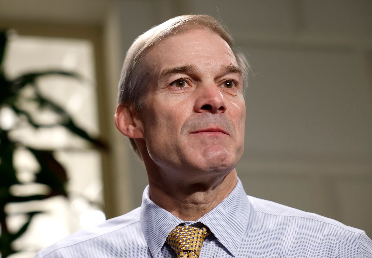 眾議員吉姆·喬丹10月20日在國會大廈離開共和黨閉門會議時向媒體發表講話。圖片來源:蓋蒂圖片社刊載於2023年10月21日印刷版,標題為《共和黨地獄的蓋茨》。