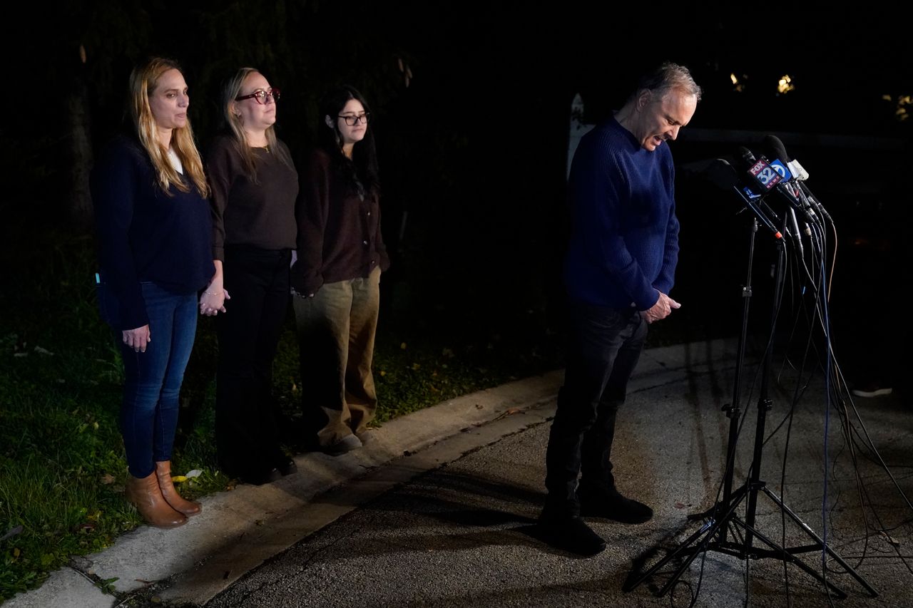 尤里·拉南在芝加哥郊外家中接受媒體採訪時停頓片刻,身後是其他家庭成員。其女娜塔莉與妻子朱迪斯·拉南於週五從加沙獲釋。圖片來源:美聯社"遺憾的是,我們既無慶祝親人歸來的幸運,亦無哀悼逝者的權利。“三位親屬阿耶萊特、奧爾和利莫爾·塞拉在聲明中表示。