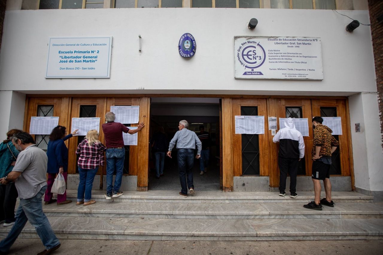 週日布宜諾斯艾利斯總統選舉期間,選民在投票站核對登記名單。圖片來源:瑪麗亞·阿馬桑蒂/彭博新聞